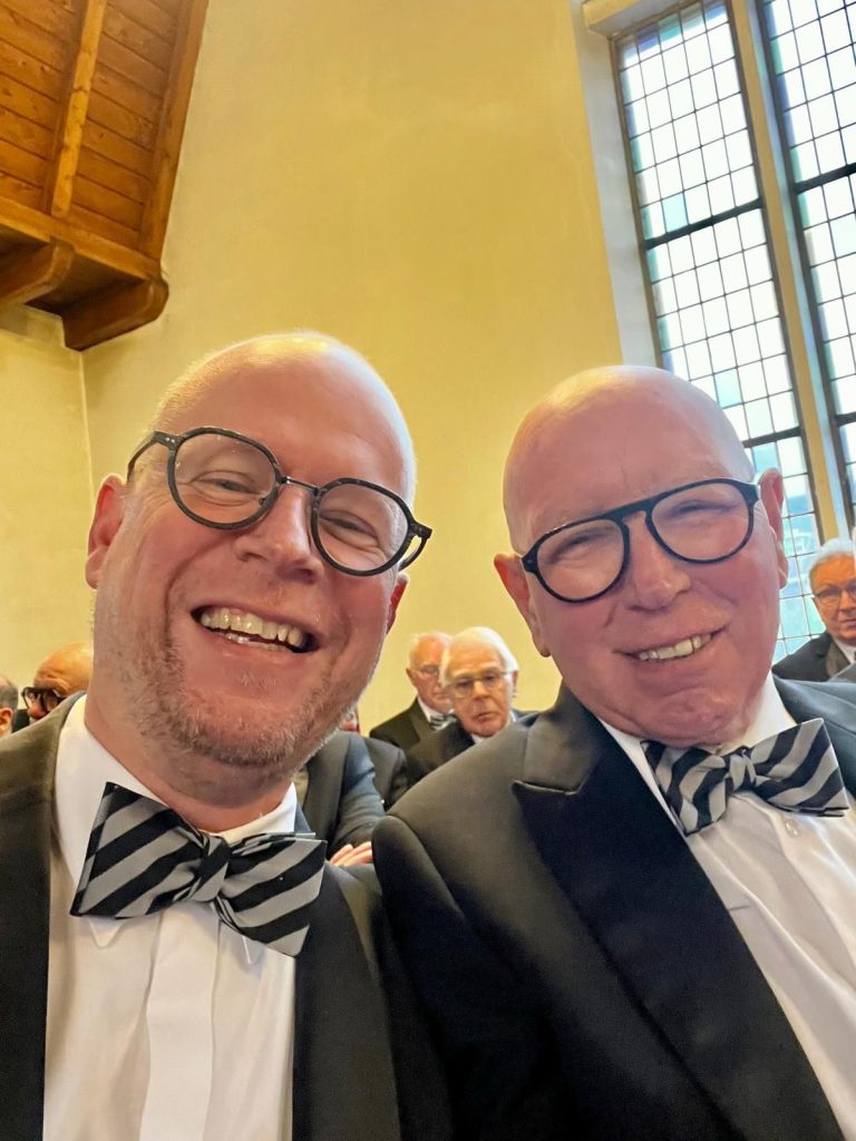 Met pijn in ons hart hebben wij op 8 augustus 2025, veel te vroeg afscheid moeten nemen van onze bariton Frans Doff-Sotta. Tijdens de indrukwekkende uitvaart in een afgeladen Auberge de Rousch te Heerlen heeft collega-zanger en vriend Donné Wetzels (links op 1e foto) een prachtige tekst opgelezen voor onze overleden zangersvriend Frans (rechts op 1e foto). Deze willen we graag hier delen ter ere van Frans.