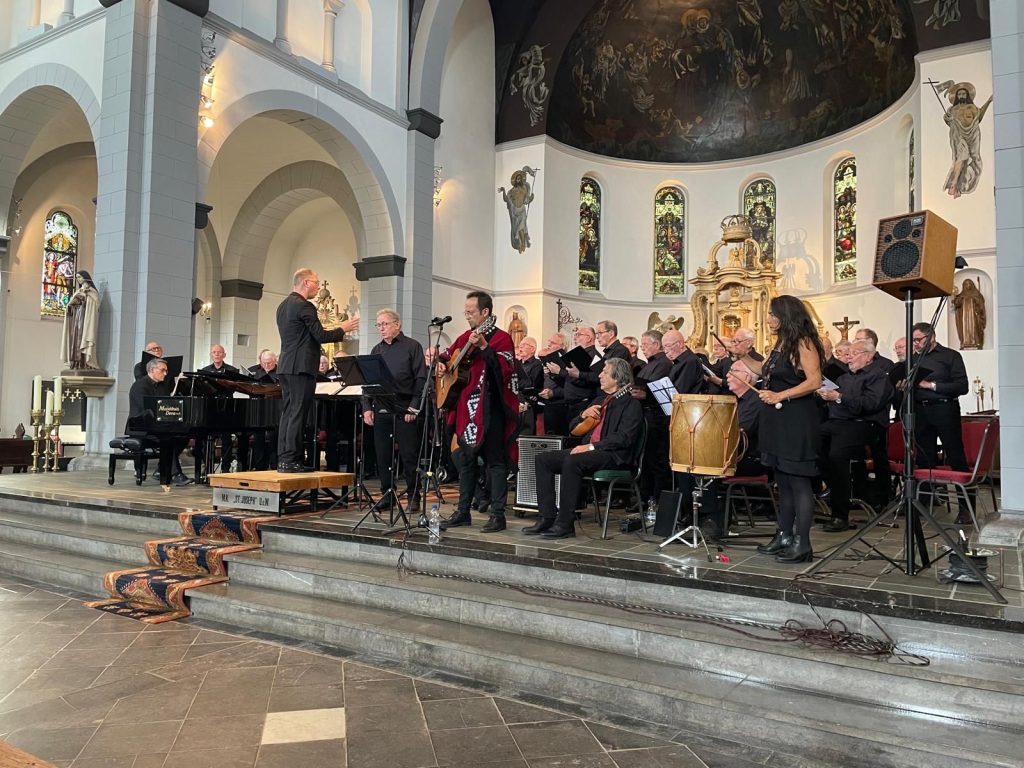 Het grootste klapstuk van ons zeer succesvolle 100-jarige Lustrumjaar was de uitvoering van de Misa Criolla in de Kerk aan de Heigank in Landgraaf. Dat we uitverkocht zouden raken voor deze bijzondere voorstelling samen met Floor Bosman en de Gruppo Criollos was met wat positief denken wel te verwachten, maar dat we een week voor de uitvoering meer kaarten verkocht hadden dan er plekken beschikbaar waren in de kerk had niemand verwacht! Hals over kop hebben we dus extra stoelen moeten aanslepen om iedereen toch een goede plek te gunnen! (mede met dank aan Schillings Rolluiken, Zonwering & Woningstoffering aan het SUN-plein in Landgraaf voor het uitlenen van hun bus!).