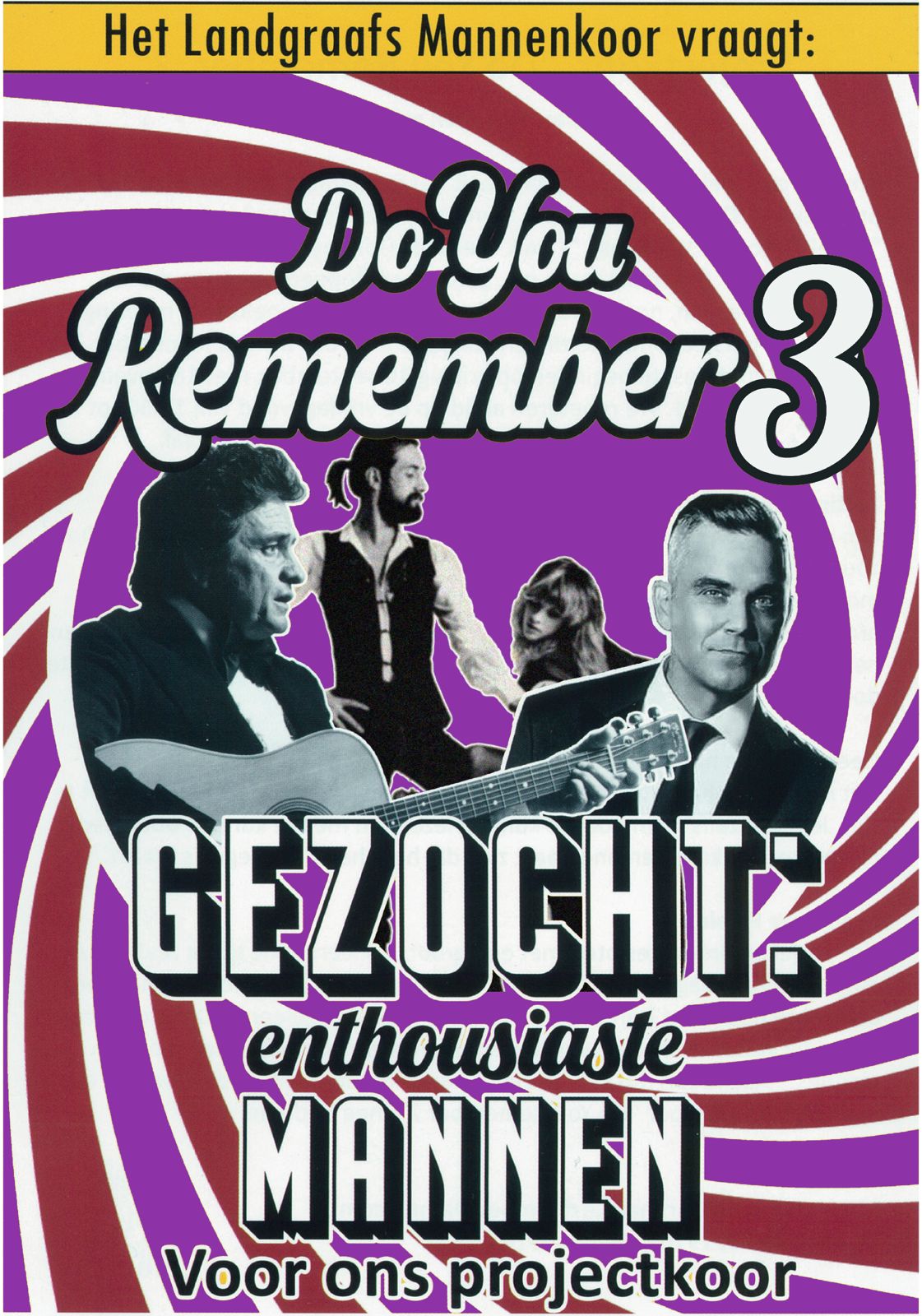 Aanmelden: Stuur een mail naar: hans.erfkemper@gmail.com Of bel: 06 467 469 14 Wegens overweldigend succes herhaalt het Landgraafs Mannenkoor het projectkoor “Do You Remember”. Nummers als: “One” (U2), “Fields of…