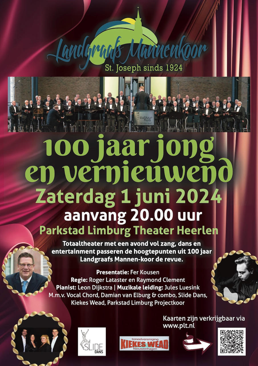 Zaterdag 1 juni 2024 is het precies 100 jaar geleden dat het Landgraafs Mannenkoor St. Joseph werd opgericht. Zo’n feest moet je samen vieren, zeker als je tot de grootste…
